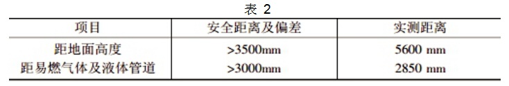 其中距地面高度實測值已經滿足標準,但是與燃氣體的距離太近,容易產生起火,一旦發(fā)生起火事件,那么后果是十分嚴重的。在檢測的過程,還發(fā)現(xiàn)有一個液體管道是后來加上去的,與原裝的配件存在偏差,并且在安裝的時候沒有考慮安全距離的問題,從而加劇了安全隱患的數(shù)值。