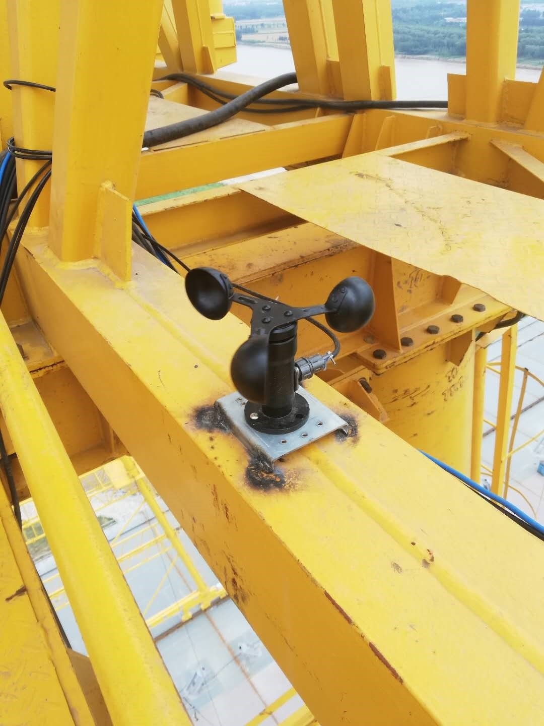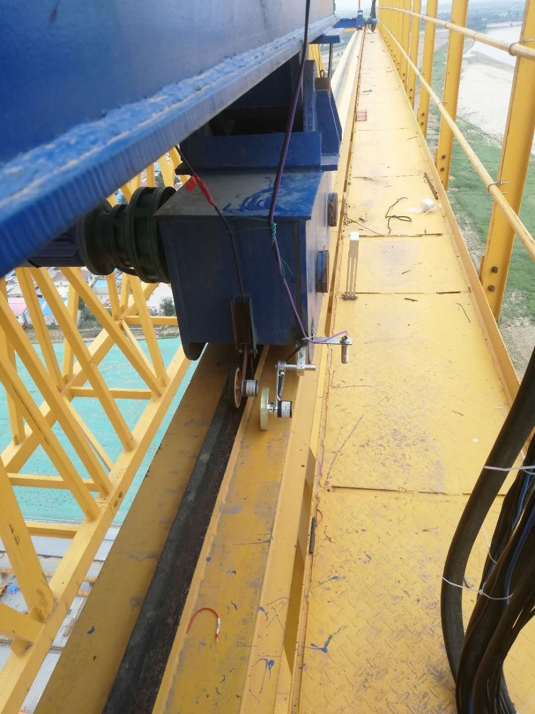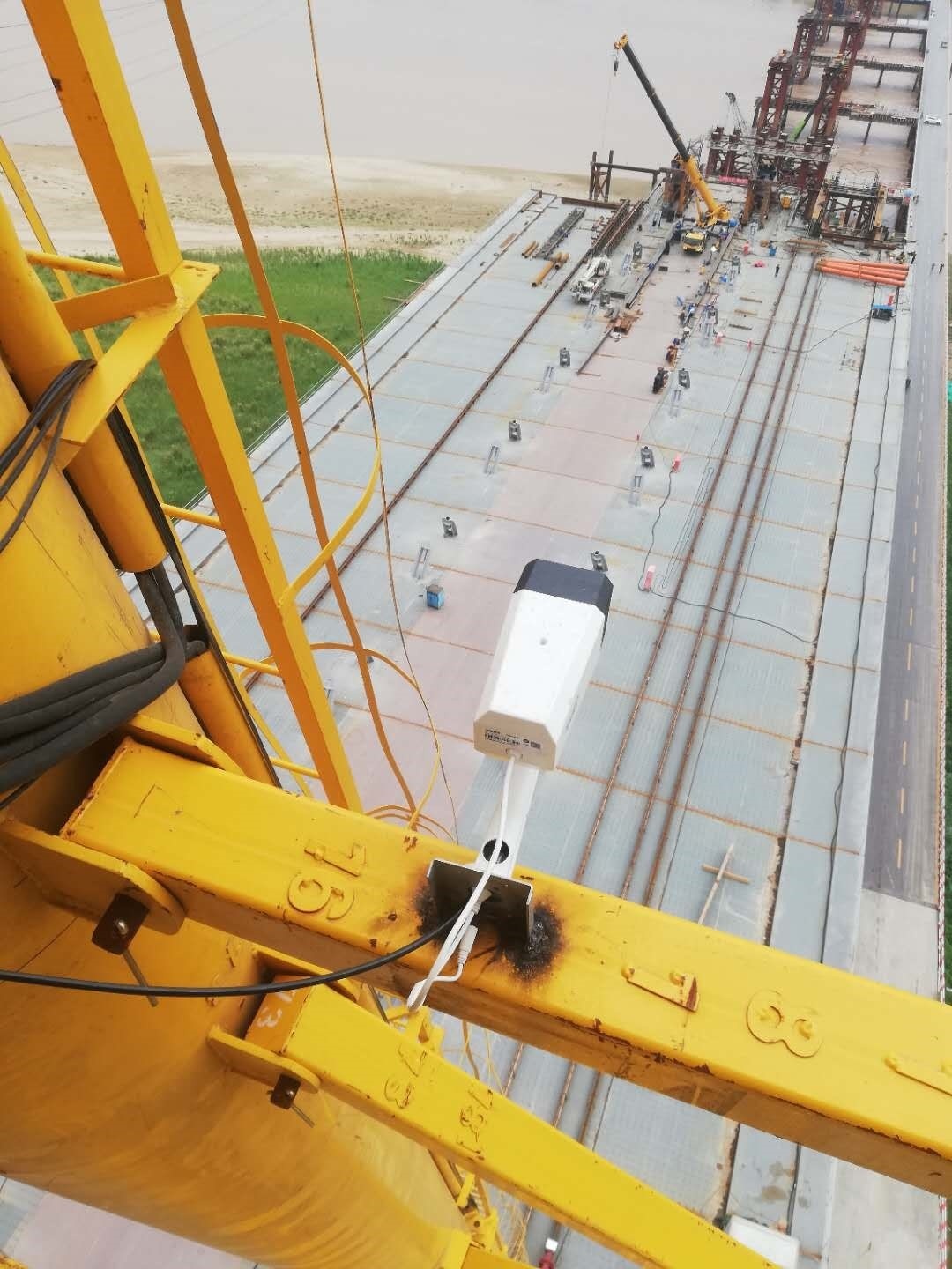 3.     龍門吊高度53米,跨度32米,為齊魯黃河大橋施工主要裝備,設備架設在黃河橋上,設備最高處距離黃河水面近80米,設備安全運行,對項目進度起到至關重要的作用,鄭州愷德爾遠程監控系統的安裝,為該設備正常運行提供了可靠保障。